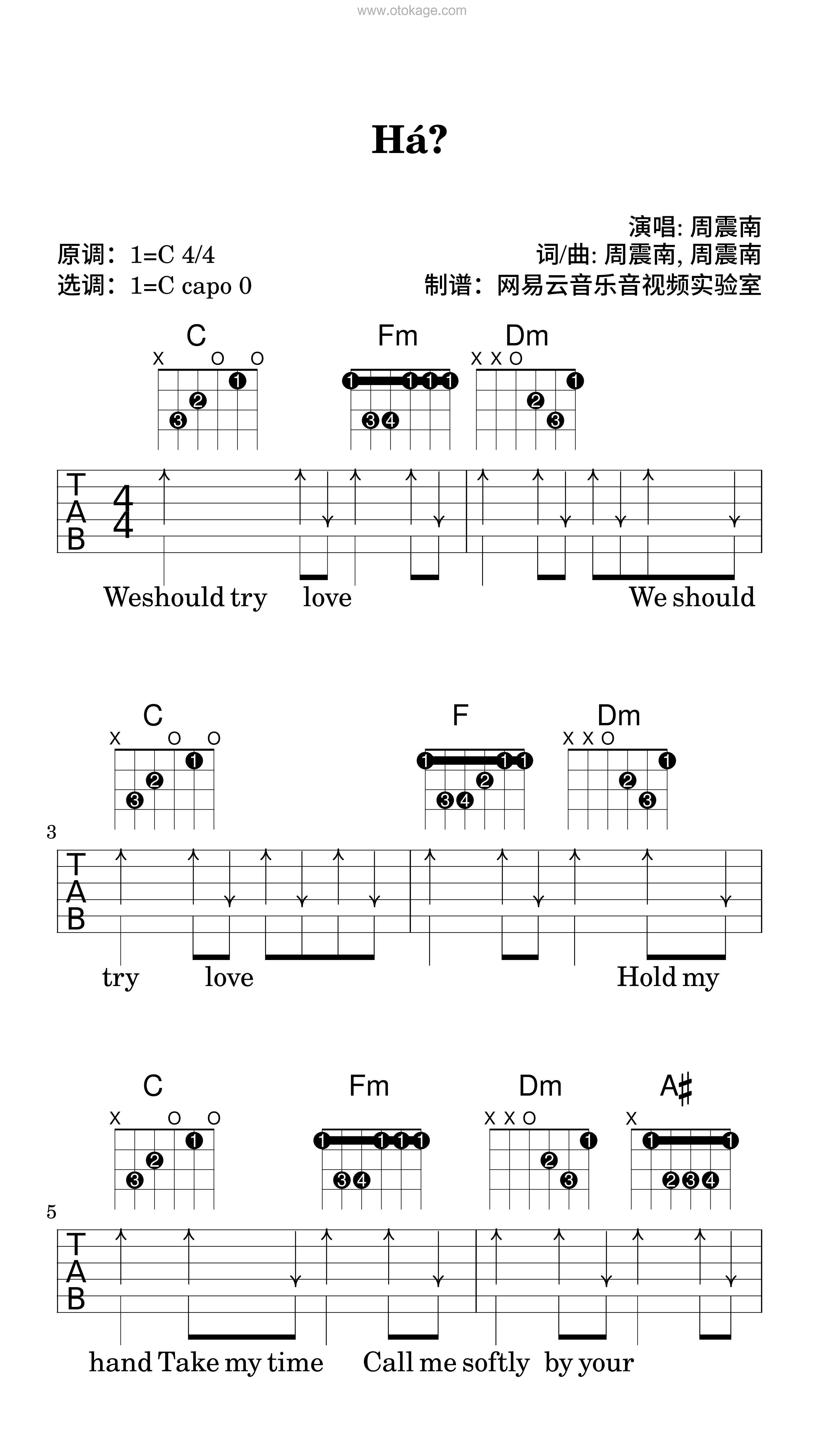 版本:吉他谱(弹唱版) 难度:简单 key:C调 bpm:75 共5页