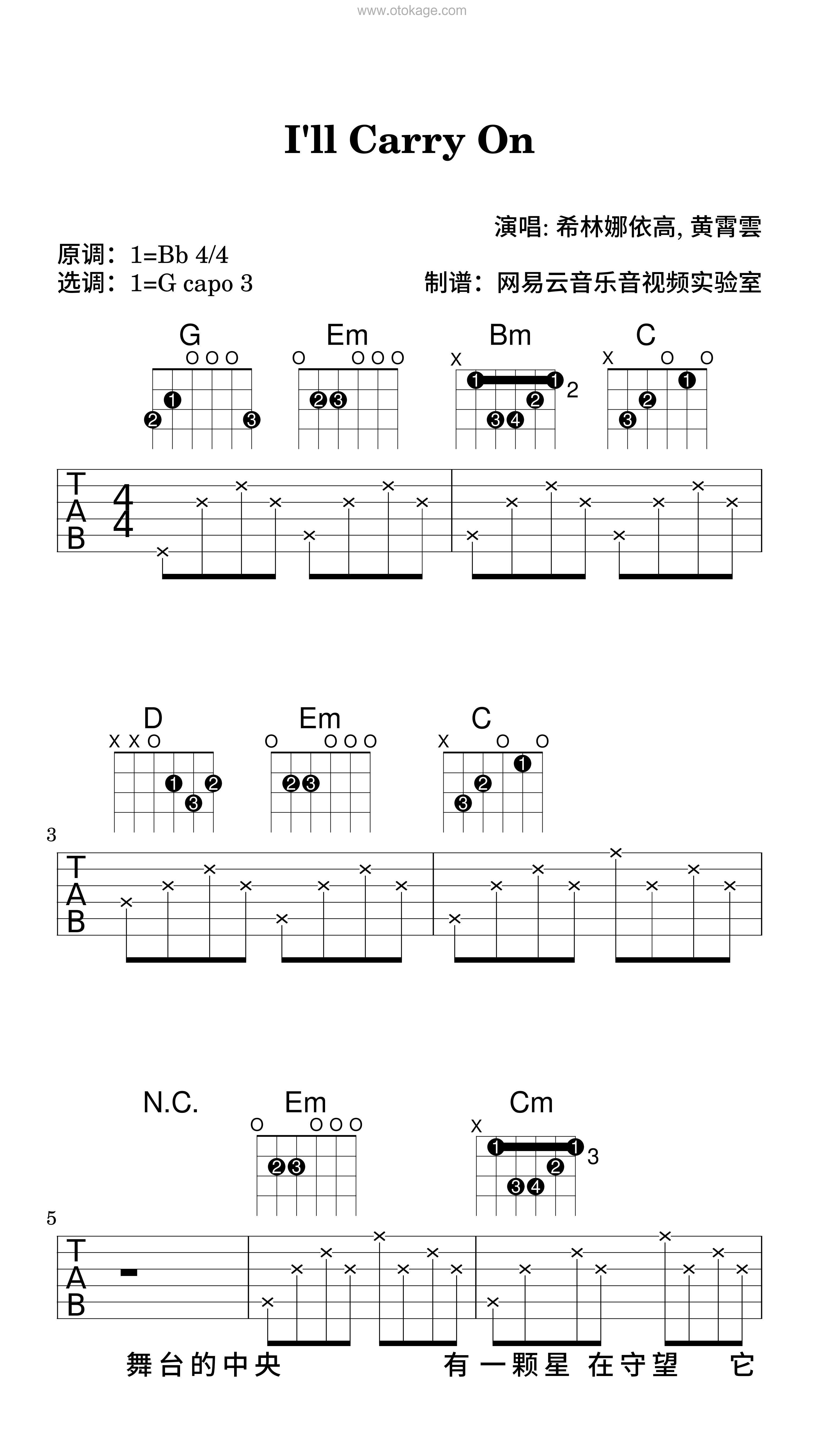 版本:吉他谱(弹唱版) 难度:简单 key:降B调 bpm:62 共9页