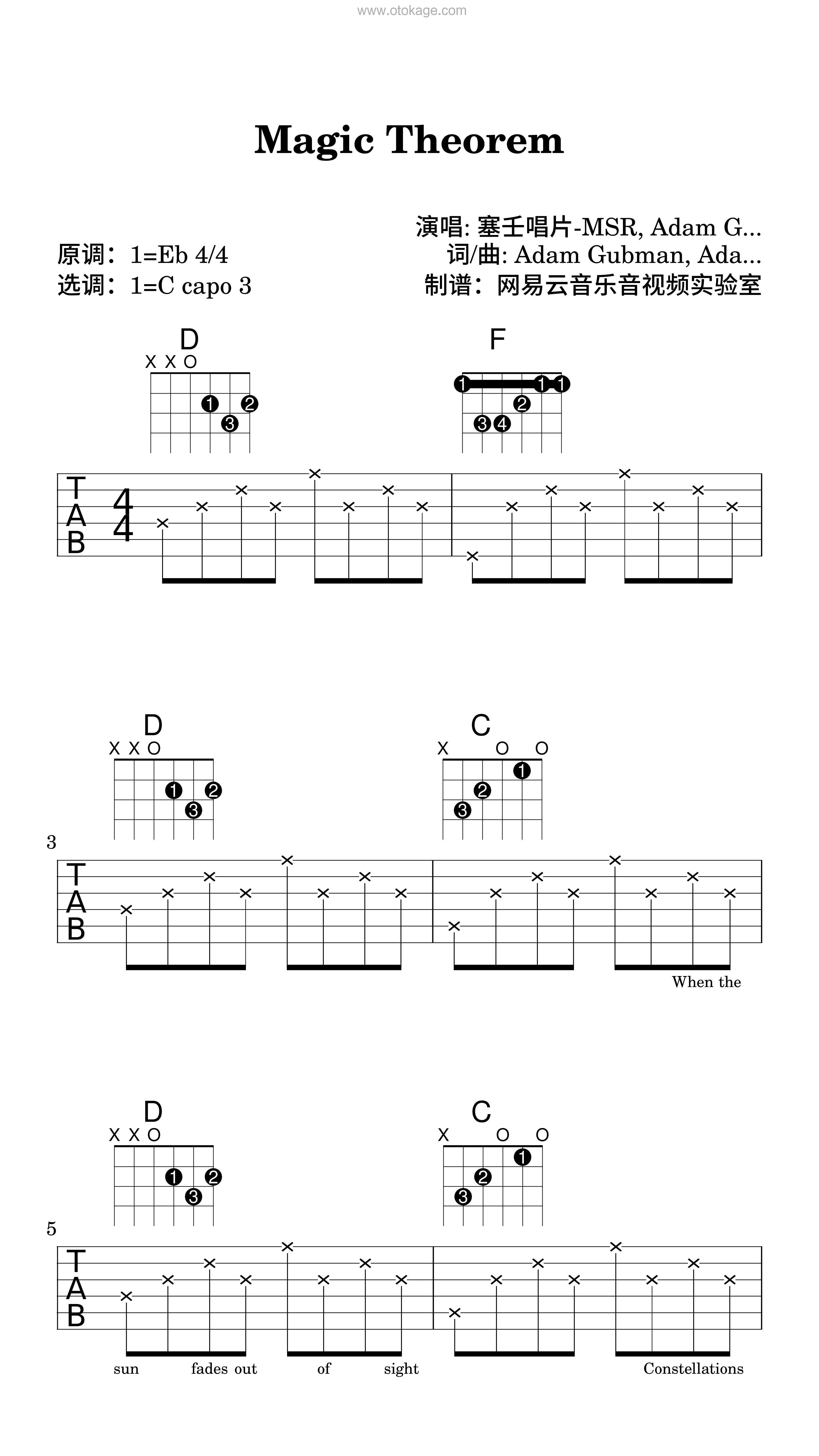 版本:吉他谱(弹唱版) 难度:简单 key:降E调 bpm:85 共12页