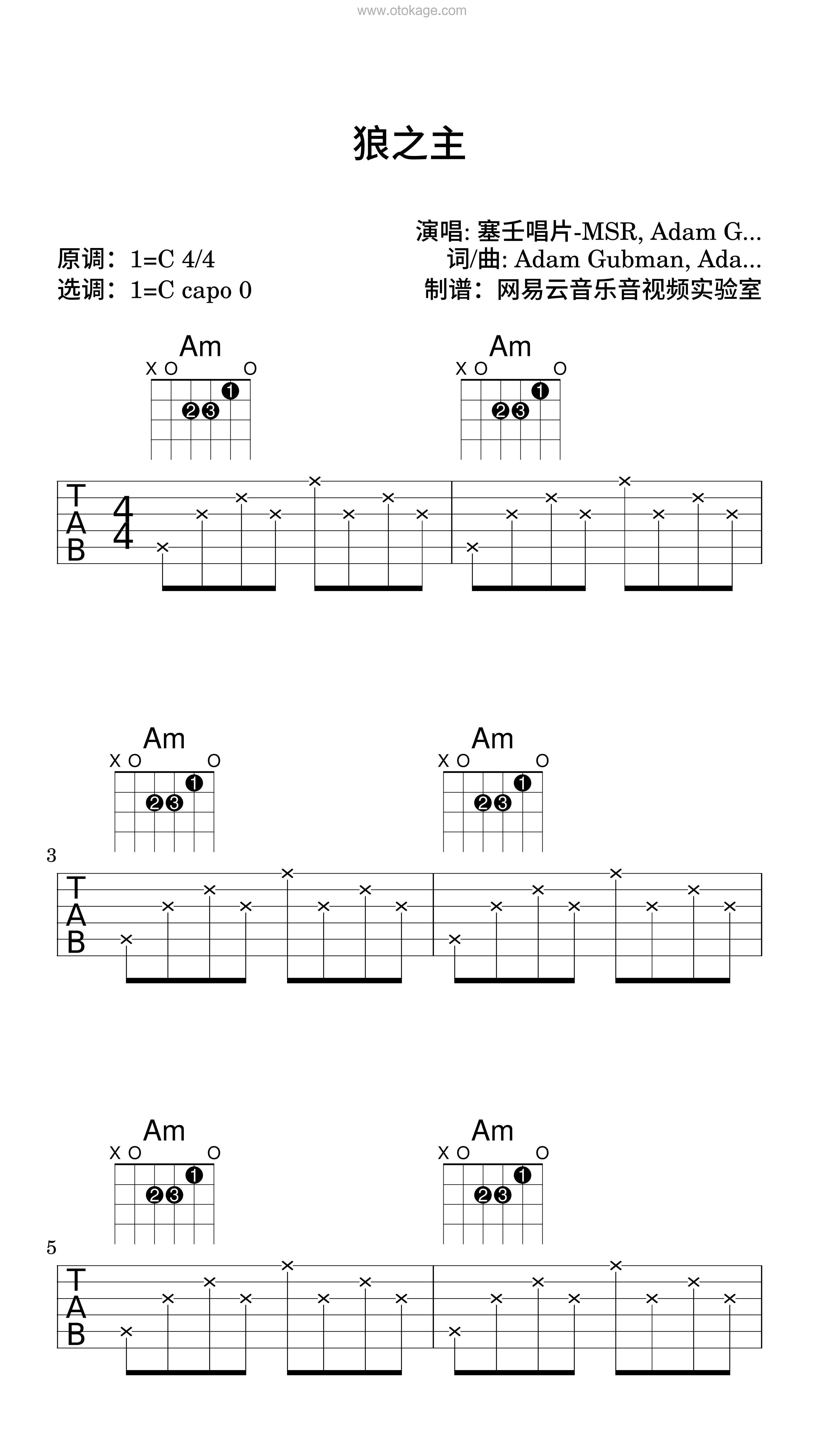 版本:吉他谱(弹唱版) 难度:简单 key:C调 bpm:136 共16页
