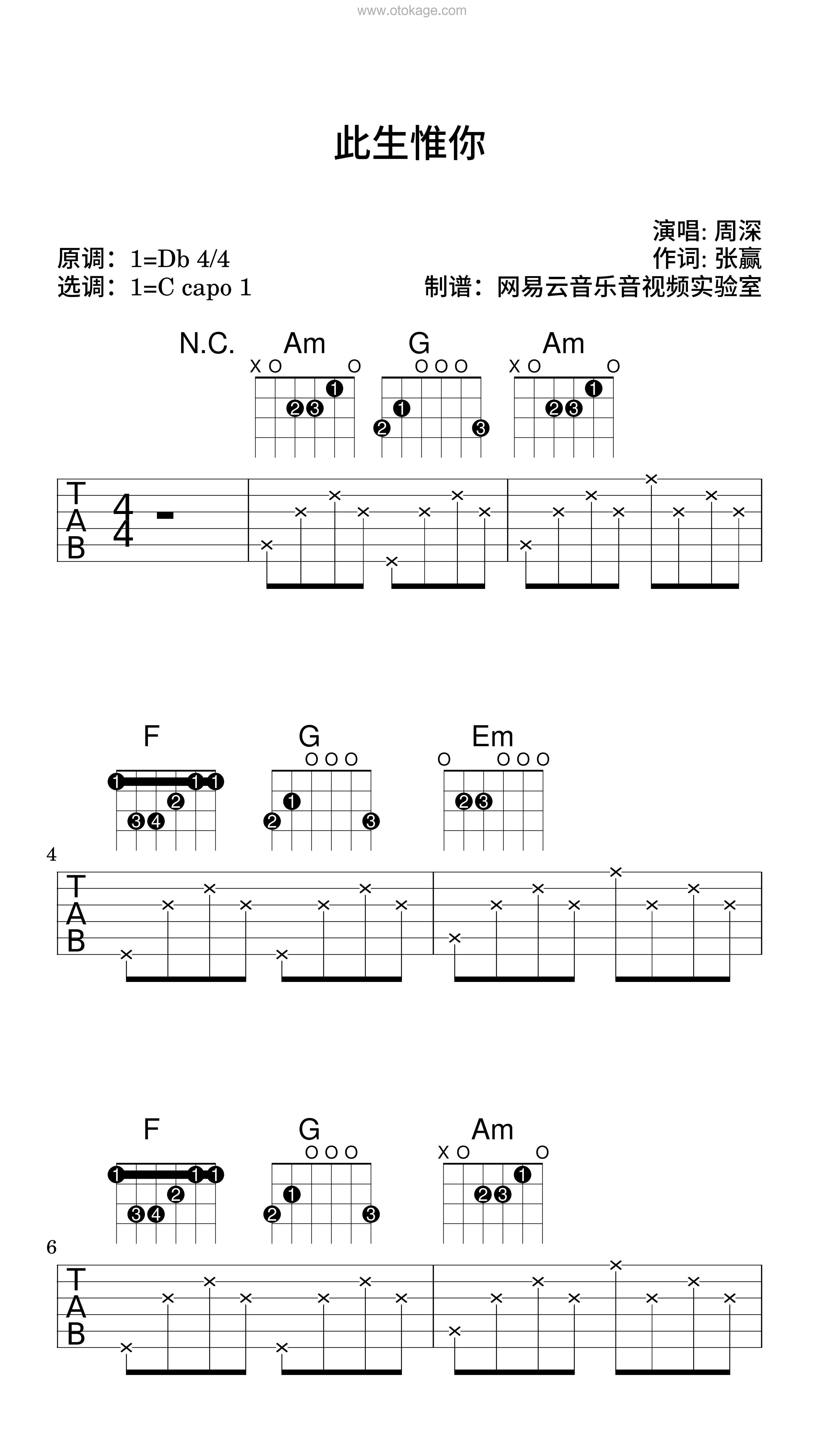 版本:吉他谱(弹唱版) 难度:简单 key:降D调 bpm:68 共13页