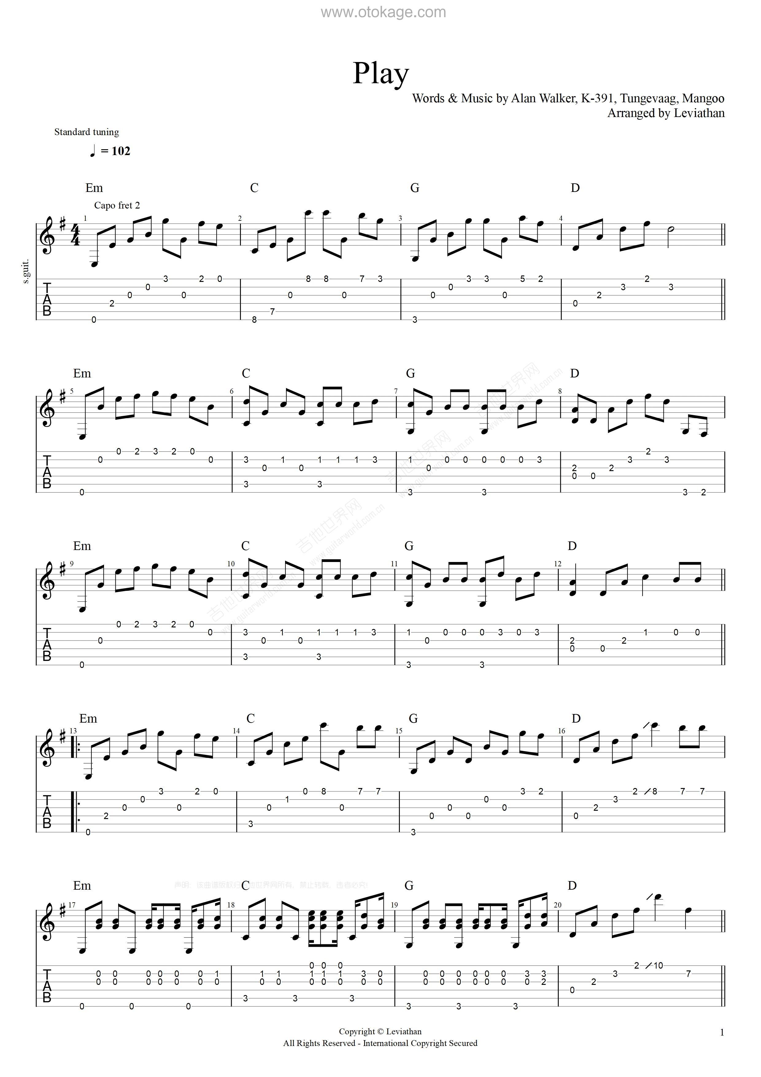 版本:吉他谱(演奏版) 难度:低 key:C调 共3页