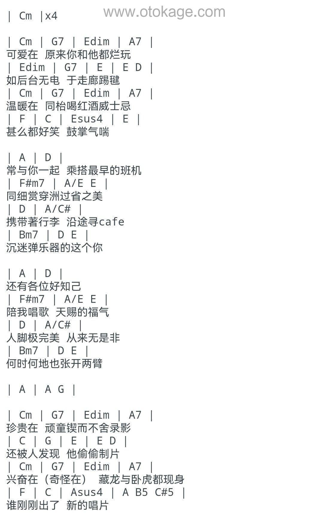 《与你常在》是一首充满温情与回忆的歌曲,通过陈奕迅与The Duo Band的合作,展现了音乐旅程中的美好瞬间。歌词中充满了对过往美好时光的怀念与珍视,同时也表达了对未来继续同行的期待。歌曲开篇便以“可爱在原来你和他都烂玩”描绘了乐队成员之间亲密无间的友情,即使是在后台无电的情况下,也能找到乐趣。这种轻松愉快的氛围贯穿整首歌,从“同台喝红酒威士忌”到“携带着行李沿途寻cafe”,每一句都透露出一种简单而纯粹的幸福。 歌词中的“沉迷弹乐器的这个你”以及“陪我唱歌天赐的福气”更是直接表达了对音乐伙伴的感激之情。这些共同度过的时光不仅让人心生温暖,更成为了彼此生命中最宝贵的财富。“人确极完美从来无是非”则强调了团队内部的和谐与默契,无论何时何地,大家都能彼此支持、相互鼓励。 然而,歌曲中也不乏一些幽默和自嘲的元素,如“恐怖在狂人钢琴师很危险”一句,虽然看似轻松调侃,但也反映了音乐创作过程中偶尔会出现的小插曲,但这些都不影响大家之间的深厚情谊。整首歌以“常与你一起多美”作为结尾,再次强调了与志同道合的朋友一起追梦的美好,让人感受到一种温暖而坚定的力量。