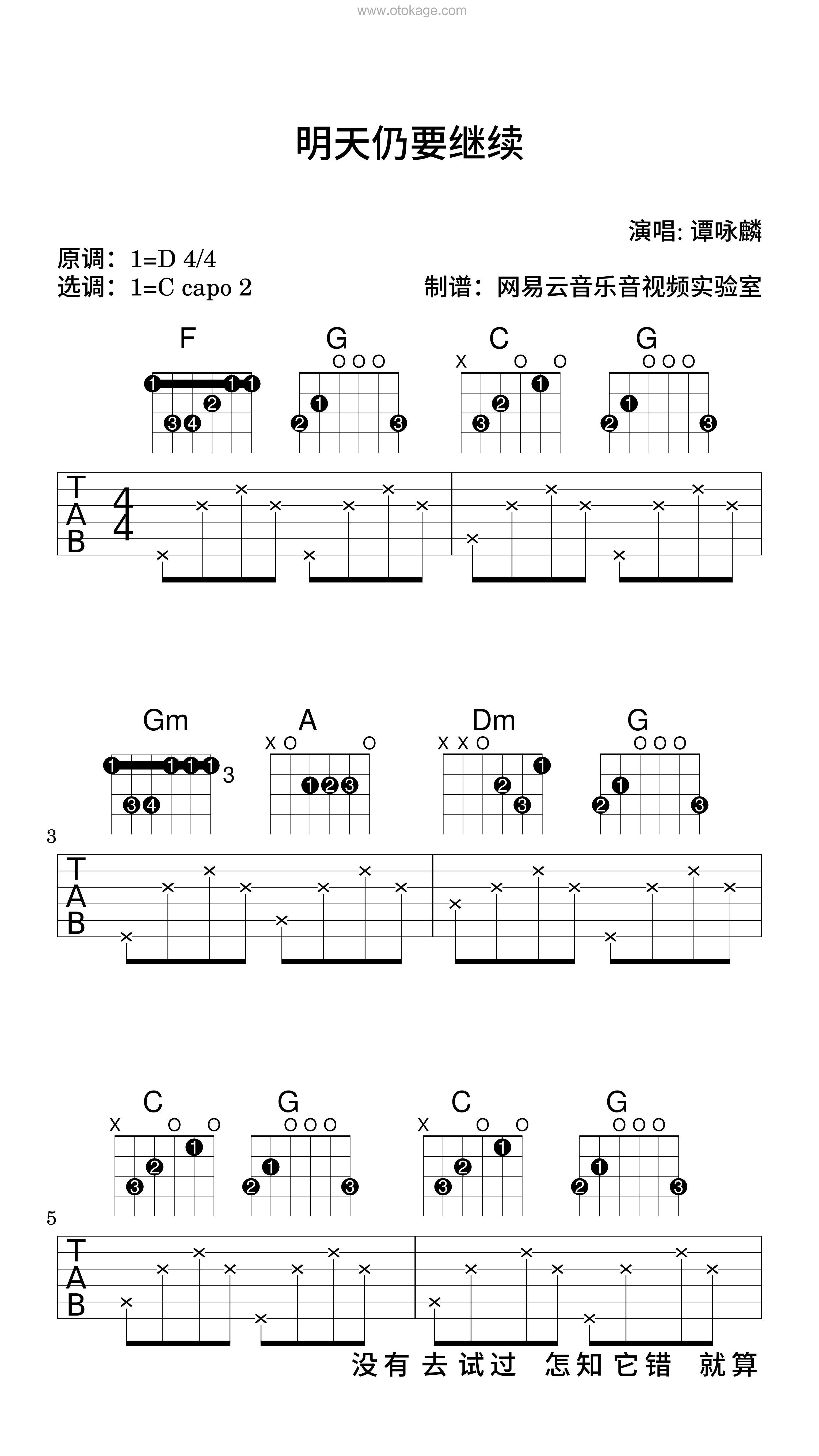 版本:吉他谱(弹唱版) 难度:简单 key:D调 bpm:61 共9页