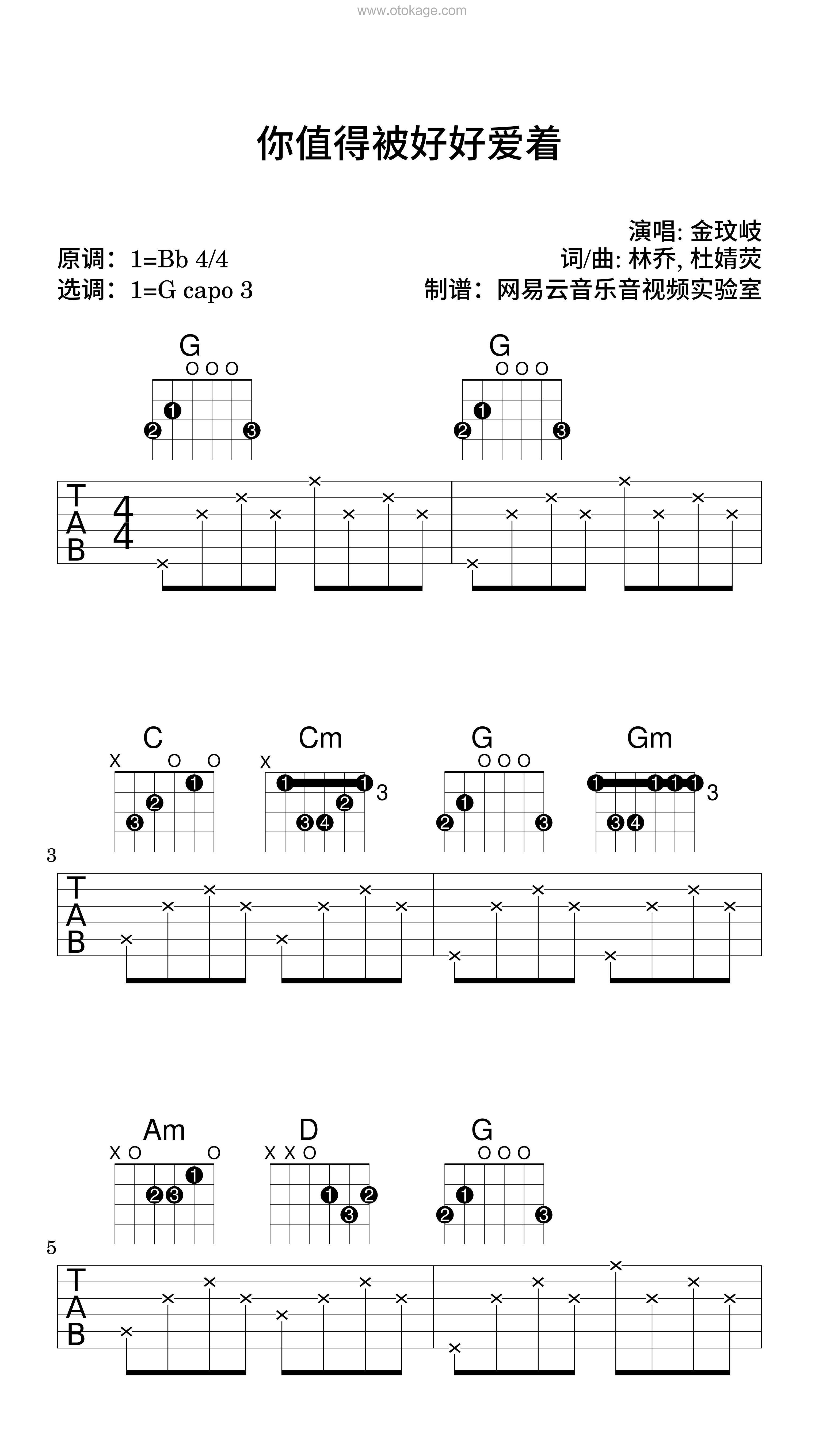 版本:吉他谱(弹唱版) 难度:简单 key:降B调 bpm:56 共10页