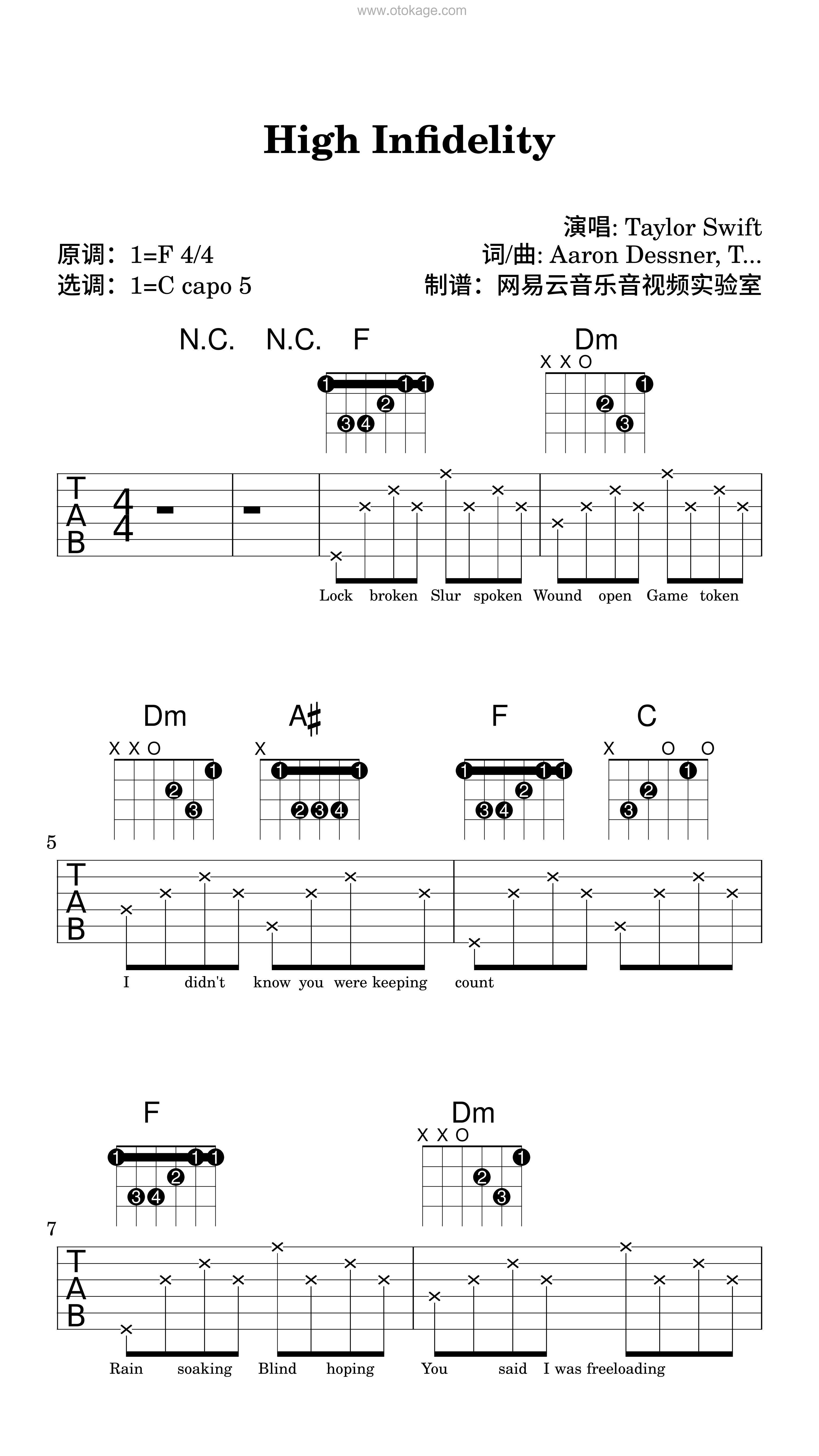 版本:吉他谱(弹唱版) 难度:简单 key:F调 bpm:88 共13页