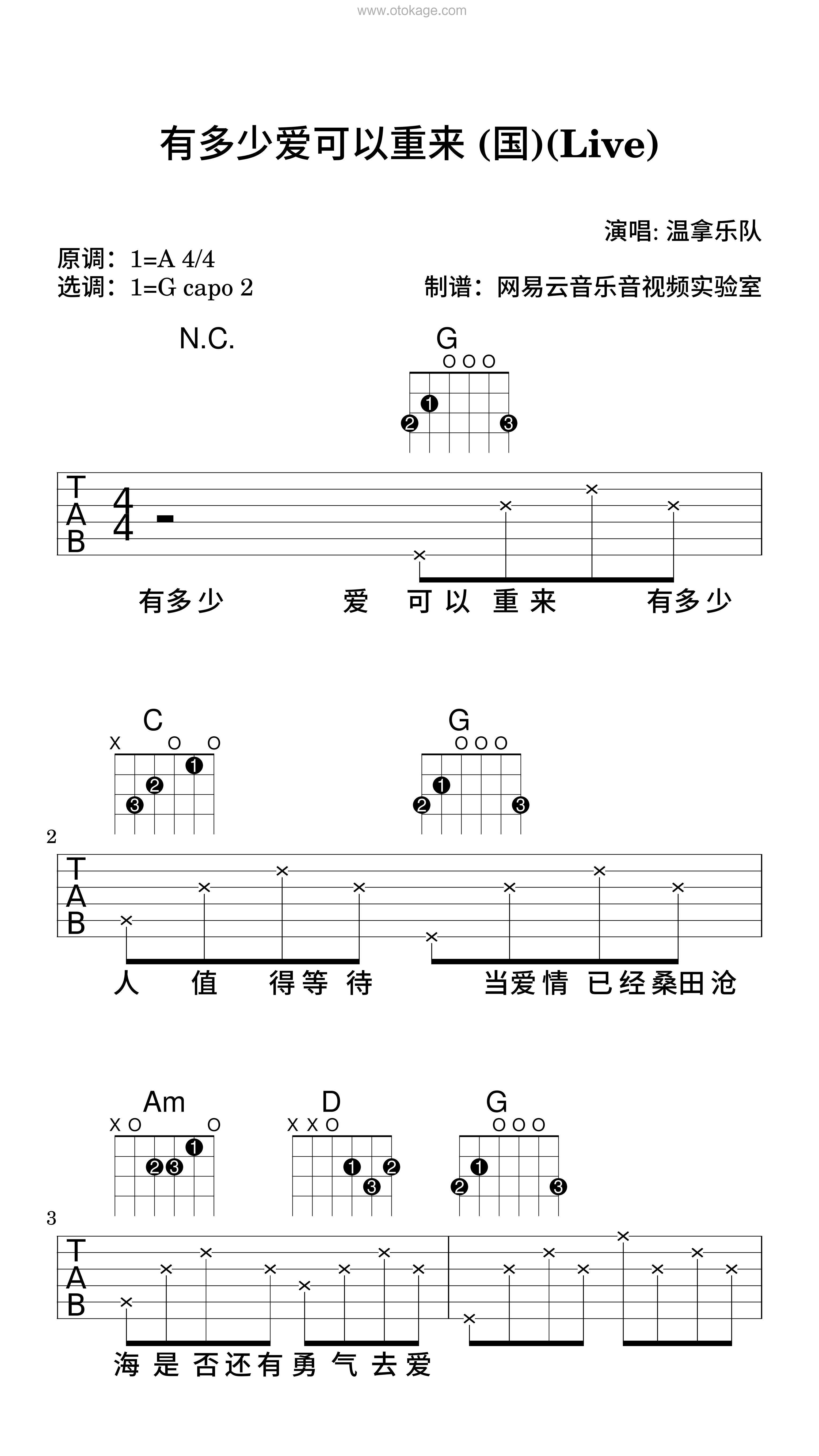 版本:吉他谱(弹唱版) 难度:简单 key:A调 bpm:56 共13页