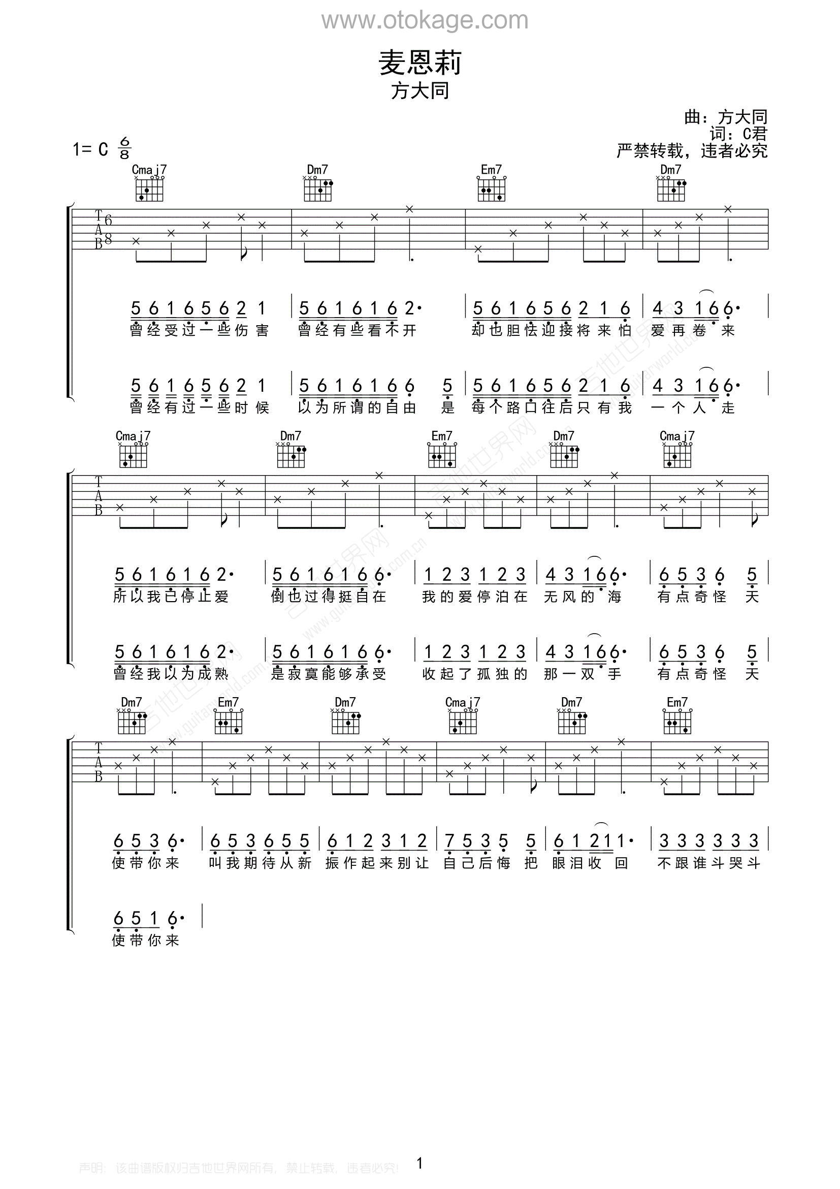 《麦恩莉》是一首由方大同演唱,C君作词的歌曲。这首歌讲述了一个关于重生与希望的爱情故事。开头部分,歌手描述了自己曾经历过情感上的创伤,因此选择关闭心门,不再轻易地付出感情,仿佛他的爱情已经停泊在一个没有波澜的海域,平静但缺乏生机。 然而,当“天使”般的女孩出现后,一切都发生了变化。她的到来让歌手重新燃起了对生活的热情和对未来的憧憬,鼓励他放下过去,勇敢面对生活中的挑战。歌中反复提到“感谢你的出现”,表达了对这段关系中对方所带来正面影响的感激之情。同时,“你是下雨时的屋檐”这一比喻,形象地说明了女孩在他生命中的重要性——如同雨天中的避难所,为他提供庇护和支持。 整首歌通过细腻的情感表达和温暖的旋律,传递了一种积极向上、珍惜眼前人的生活态度。它告诉我们,即使经历了挫折与困难,只要心中还有爱,就能找到属于自己的幸福。
