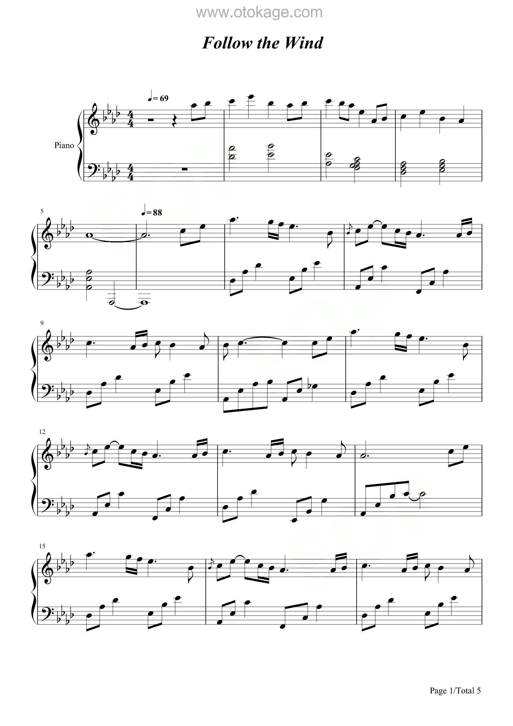 版本:钢琴谱(演奏版) key:降A调 共5页