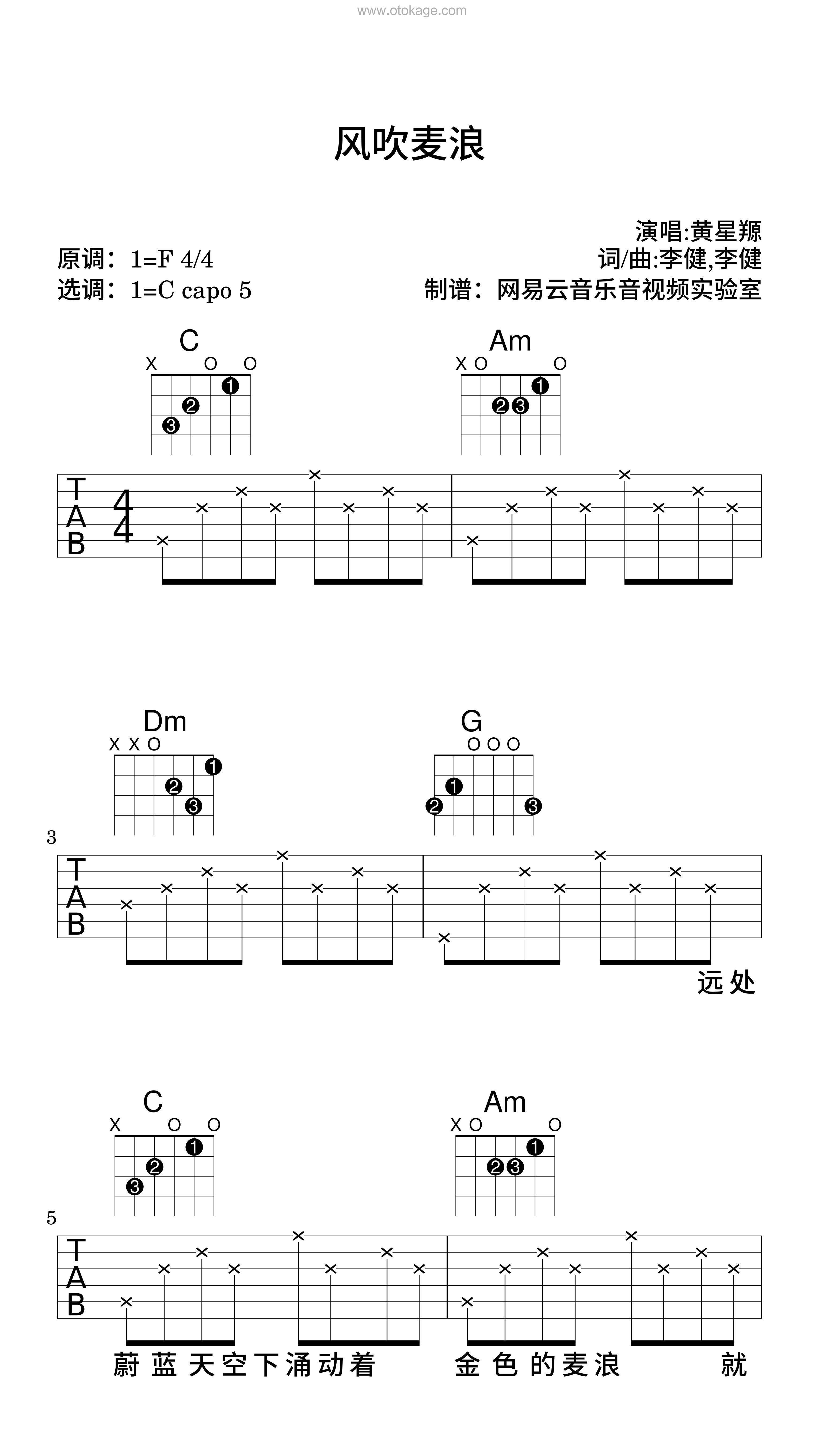 版本:吉他谱(弹唱版) 难度:简单 key:F调 bpm:68 共8页