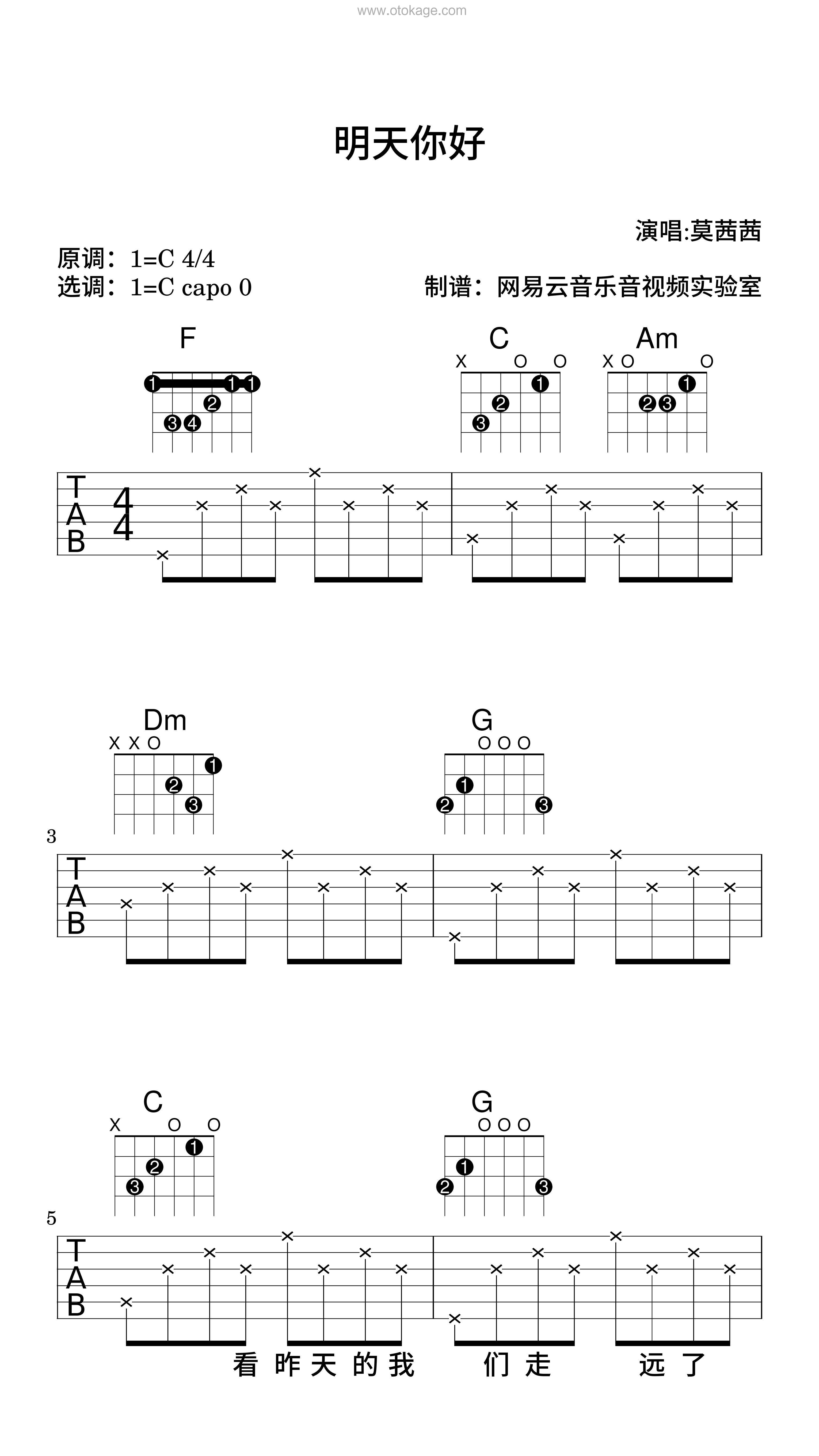 版本:吉他谱(弹唱版) 难度:简单 key:C调 bpm:95 共13页