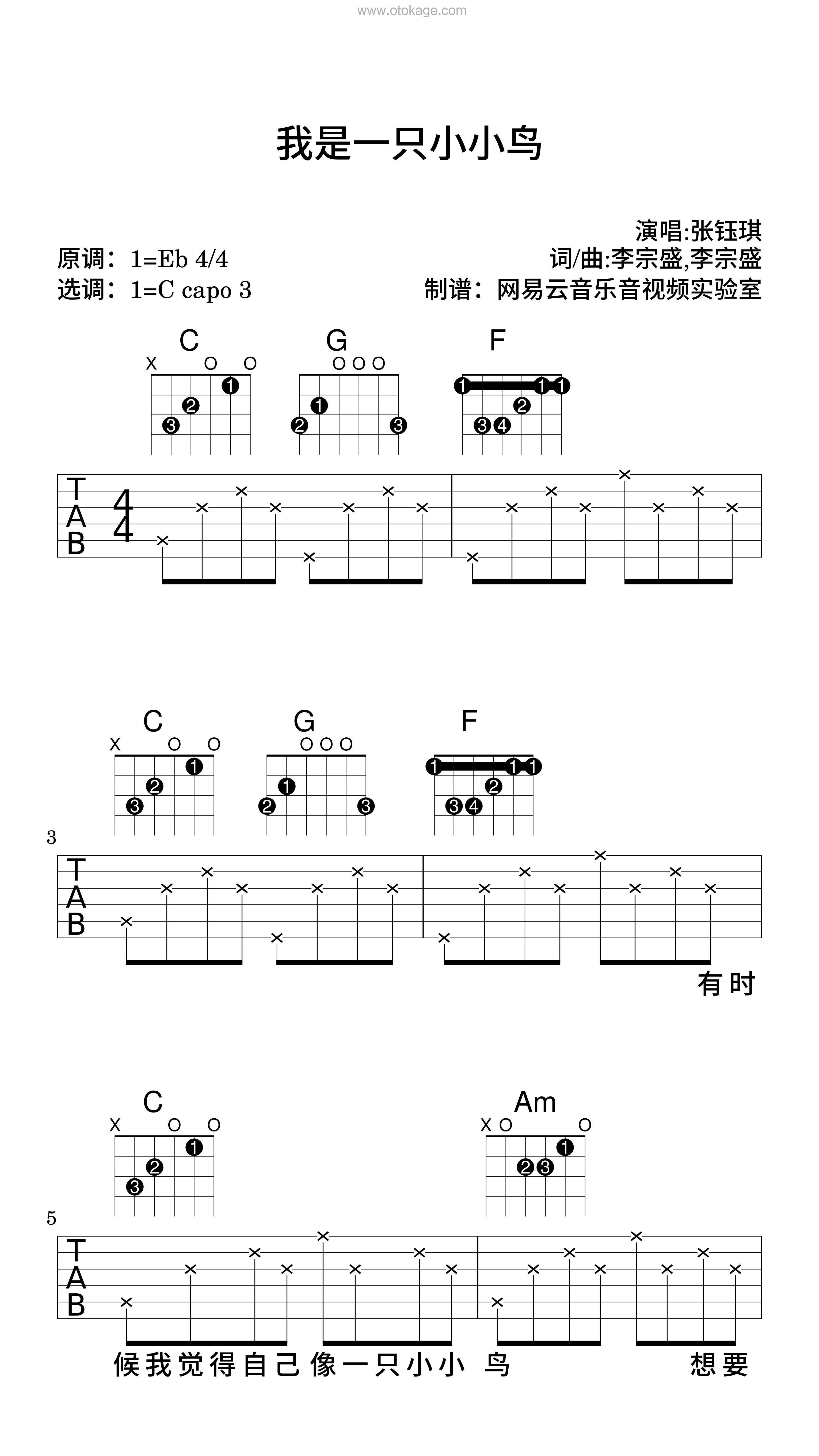 版本:吉他谱(弹唱版) 难度:简单 key:降E调 bpm:67 共9页