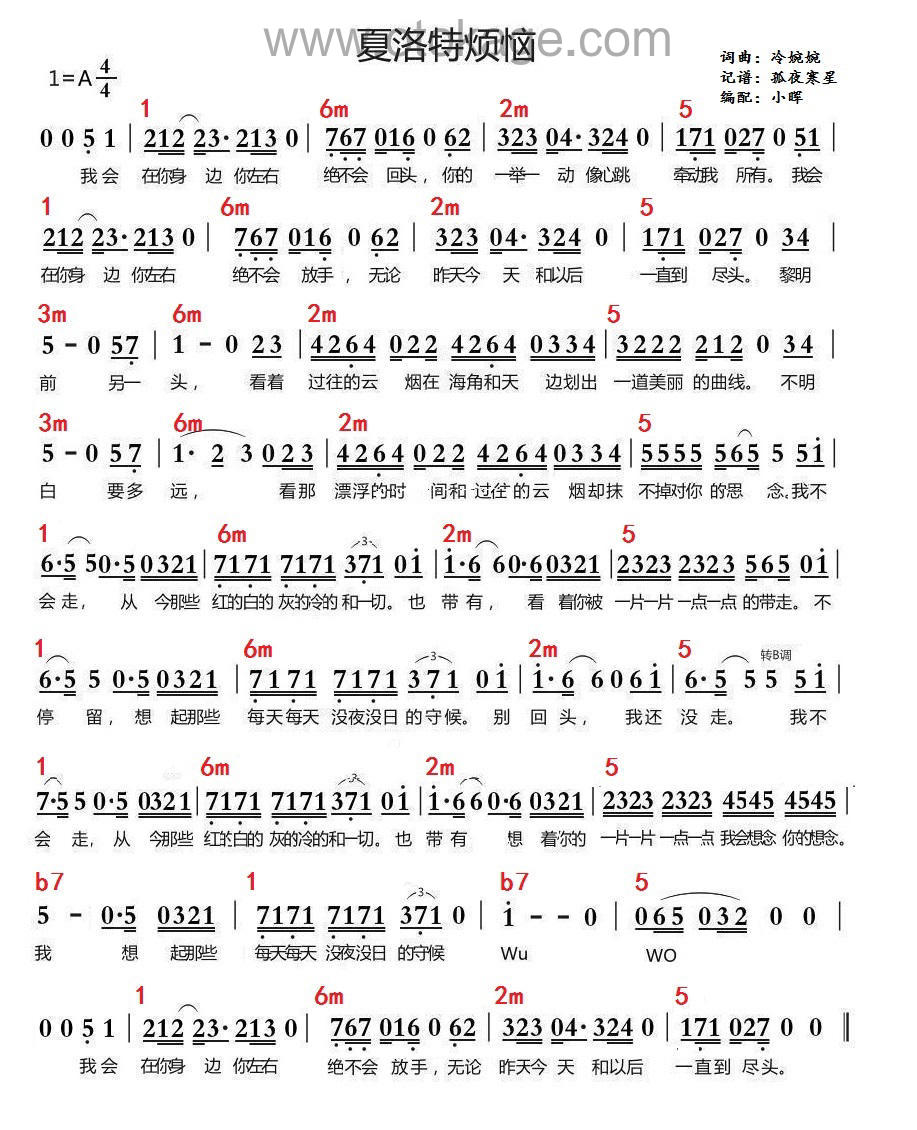 《夏洛特烦恼》这首歌曲,以深情而略带忧伤的旋律,表达了主人公对某个人物(可能是爱人)的执着与不舍。整首歌通过一系列细腻的情感描绘,展现了主人公坚定的陪伴决心,以及对对方深厚的感情。歌词中反复出现“我会在你身边,你左右绝不会放手”,强调了无论时间如何流逝,无论遇到什么困难,主人公都会坚定地守护在对方身旁,这份承诺既温暖又令人感动。 歌曲还通过对“过往的云烟”、“漂浮的时间”等意象的描述,传达了一种时间流逝、世事变迁的感慨,但即便如此,主人公对于对方的思念之情却始终未减,这种情感上的坚持与执着,成为了整首歌最为核心的部分。此外,“红的白的灰的冷的和一切”等色彩与温度的对比,不仅丰富了歌词的意境,也隐喻了生活中的各种经历与感受,进一步加深了歌曲所表达的情感层次。