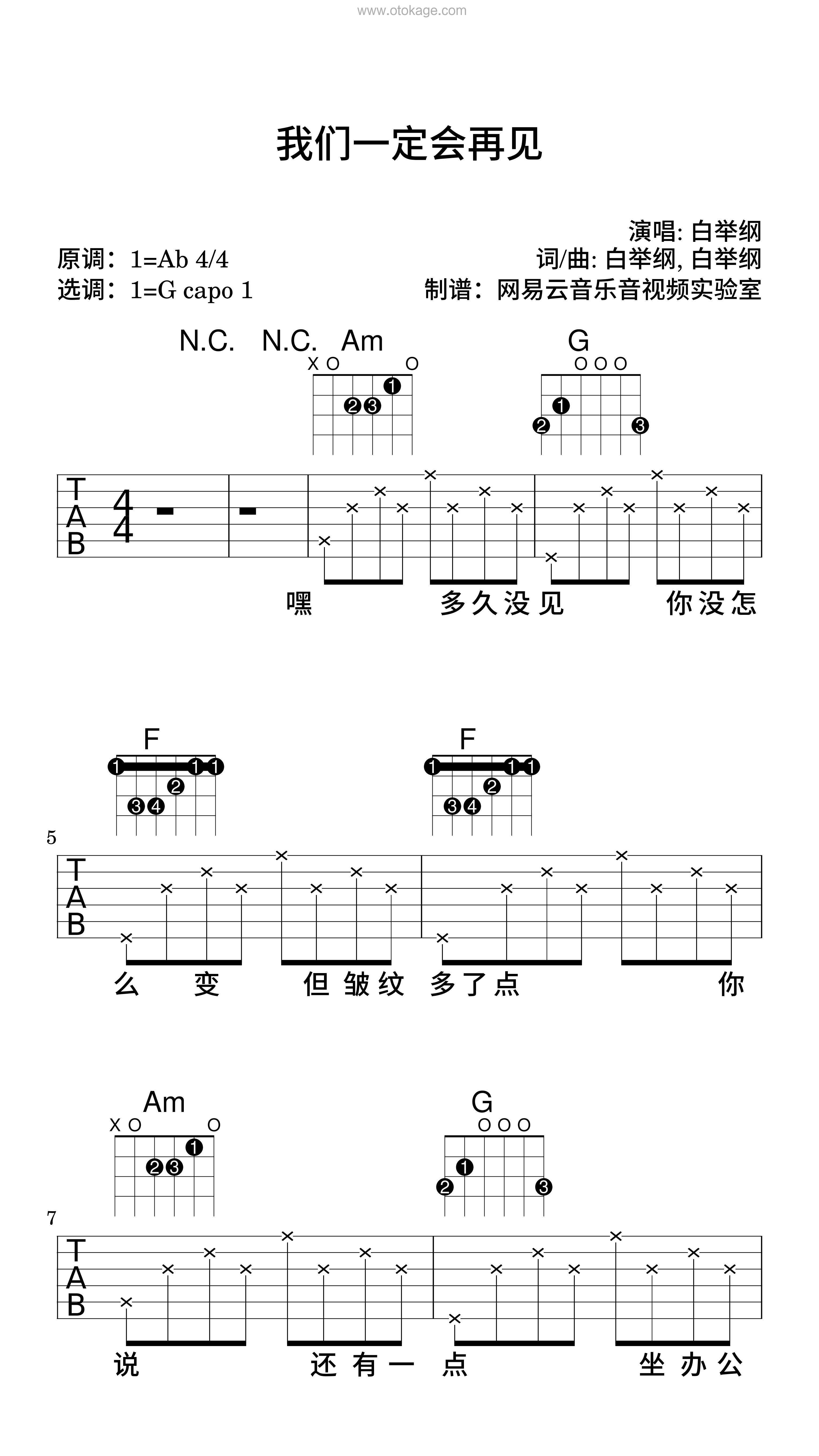 版本:吉他谱(弹唱版) 难度:简单 key:降A调 bpm:90 共13页